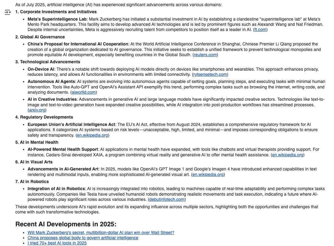 input="What are the latest developments in AI as of 2025?"
