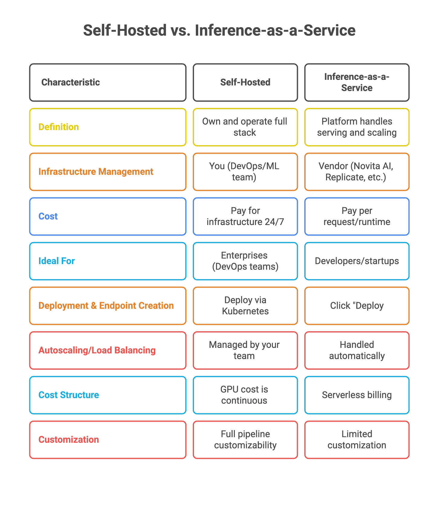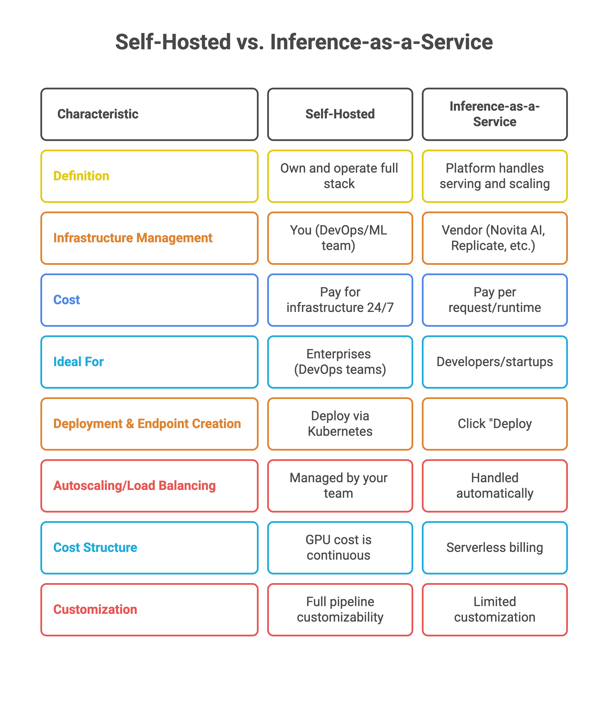 This is where the choice between self-hosted and inference-as-a-service solutions becomes pivotal.