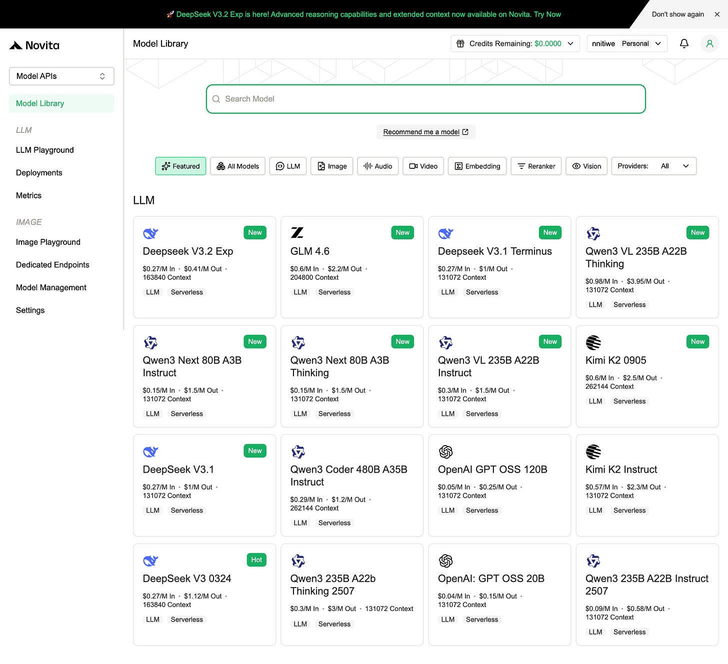 Novita advertises up to 50% cost savings compared to self-hosted setups, making it easier to experiment without breaking the bank.